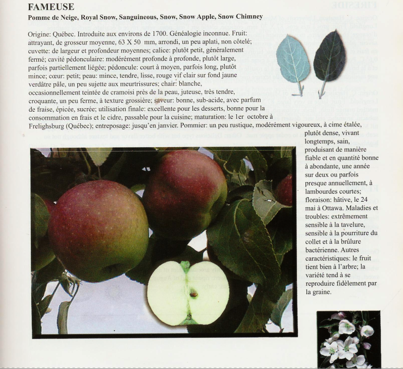 《 Dans cette province, il n’y a pas bien longtemps, il y avait des pommiers de variété Fameuse dépassant notablement la centaine d’années et qui, malheureusement, succombèrent pendant le rigoureux hiver 1917-1918 》