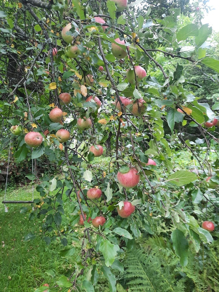 Entre les deux jobs, passant une semaine à Sainte-Mélanie – sur le territoire de cette ferme où j’ai grandi, et que je chéris – j’avais fait la tournée des pommiers sauvages de ma connaissance. J’en avais pas vraiment eu l’occasion depuis des années, tandis que j’étais aux études ou à travailler dans des régions plus ou moins éloignées. Et j’ai alors, en quelques jours, récolté tout ce que je pouvais, qui était mûr à souhait. De quoi remplir, de caisses et de sacs chargés des fruits gratuits et aux variétés nombreuses et sans noms, tout l’arrière de la fourgonnette Toyota Sienna que je m’étais ramenée de l’Ouest Canadien. J’ai transporté ce trésor de récoltes de pommes sauvages, en variations de tailles, de formes, de jaunes, rouges, verts, orangés, rosés – avec toute la joie des découvertes – , chez l’ami de longue date, avec qui nous avions déjà fait du cidre. Ayant en tête des projets de transformation alimentaire, il m’a offert ce qu’il pouvait en contrepartie de ces centaines de kilos de pommes. Quelque chose de modique, comme 150 $, que j’ai tôt fait de convertir en essence et épicerie pour ma première semaine de travail dans un autre verger.
