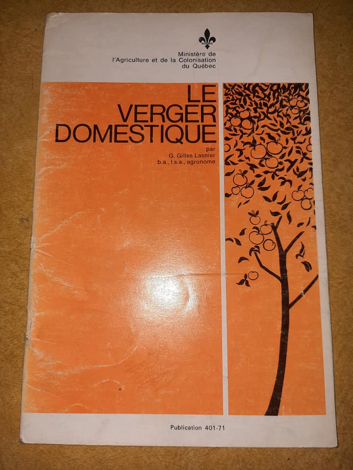 La petite collection ministérielle compte aussi « Le verger domestique », de l’agronome Gilles Lasnier, publié par ce Ministère qui, en 1971, s’appellait encore « de l’Agriculture et de la Colonisation du Québec » !