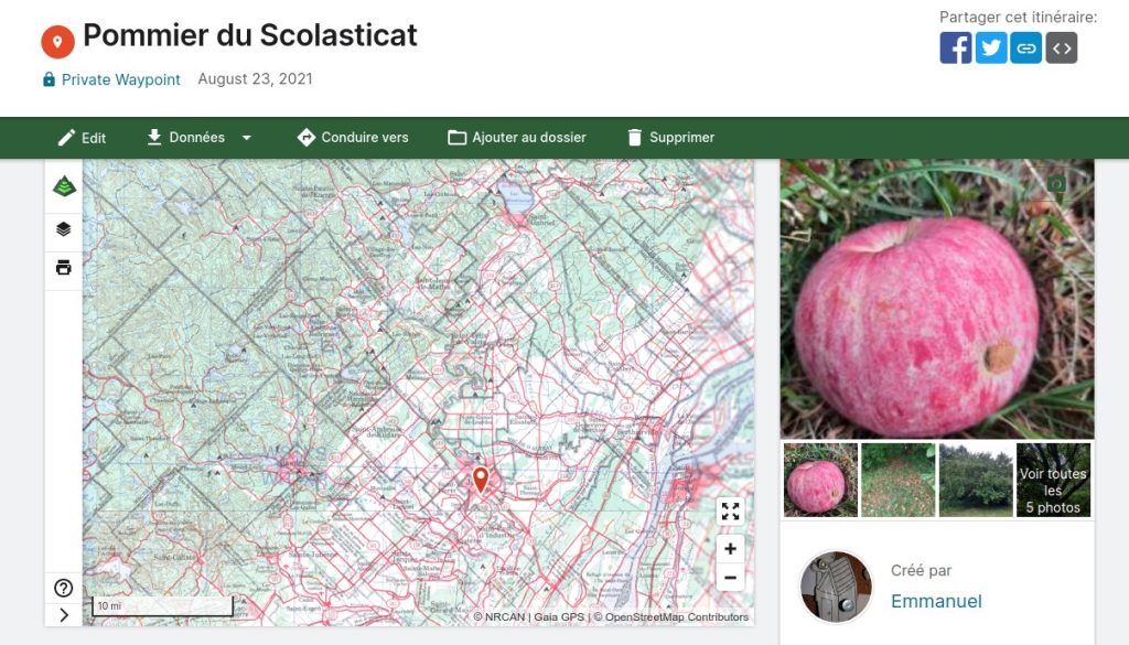 Ainsi, je ne pouvais que rêver de faire de même par chez nous, partant du haut du rang Saint-Albert de Sainte-Mélanie et ses environs, où se trouvent encore des dizaines de pommiers fort probablement plus vieux qu’aucun.e habitant.e encore vivant.e !