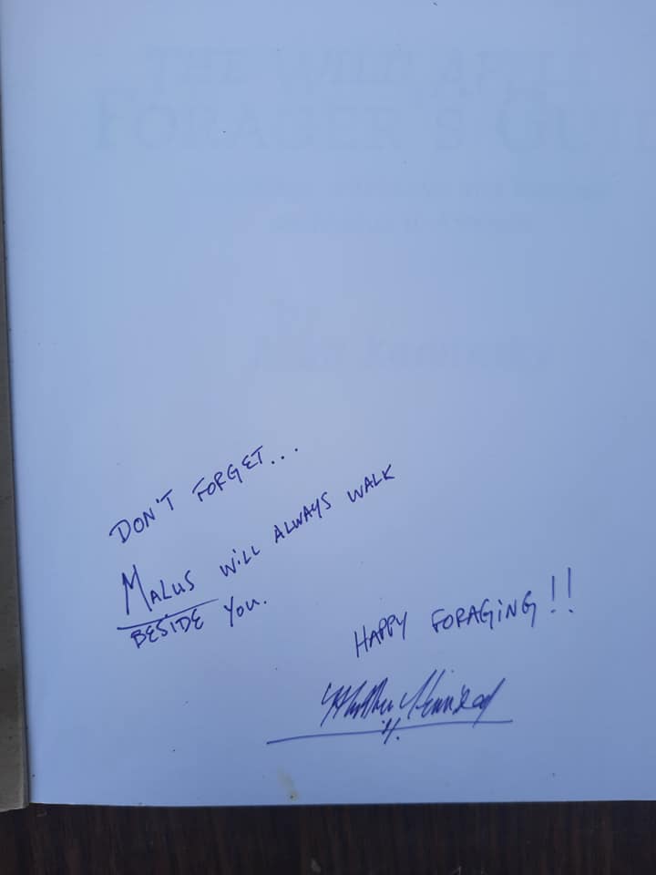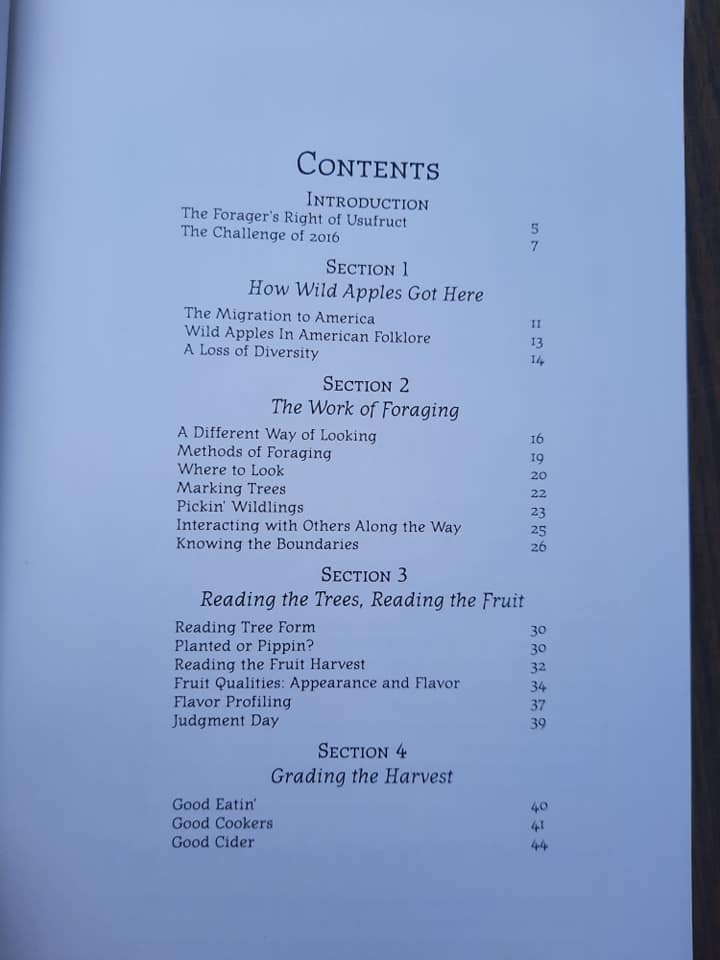 Le premier est son opuscule « Le guide du cueilleur de pommes sauvages », sous-titré « Enseignements, anecdotes et billets d’humeur sur les Malus en Amérique » (ma traduction). Un essai informé sur la cueillette de ces fruits abondants mais pourtant méprisés qui abonde de conseils et réflexions sur la pratique de la cueillette sauvage. Il présente également un répertoire des variétés sélectionnées et nommées par ses soins. Il en vend des scions (pousses de l’année qui sont ensuite greffées sur des sujets porte-greffes) au printemps, via la boutique de son site web.