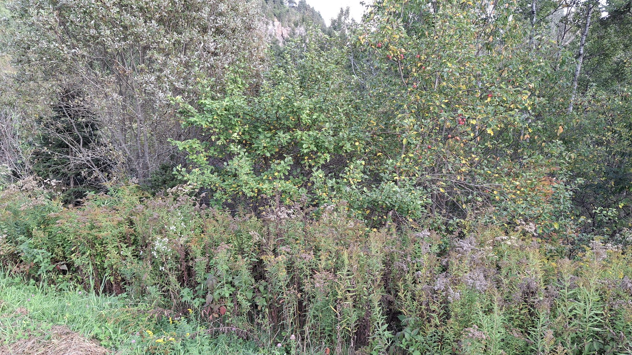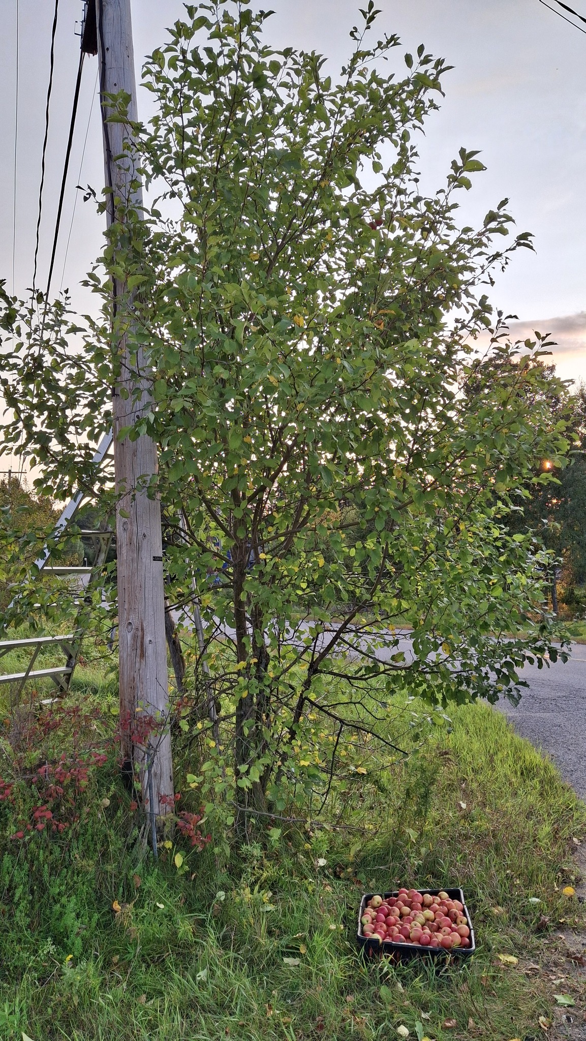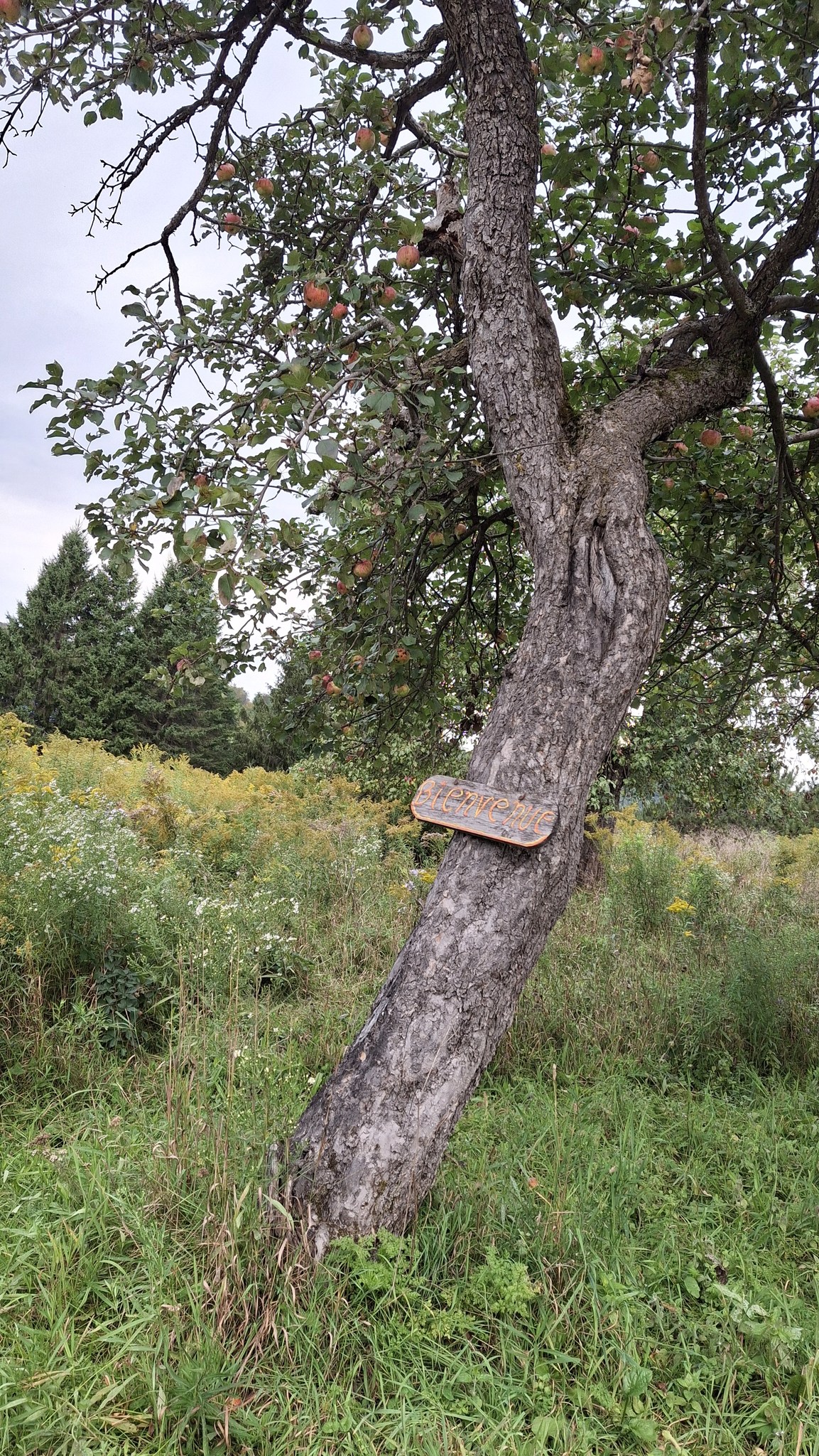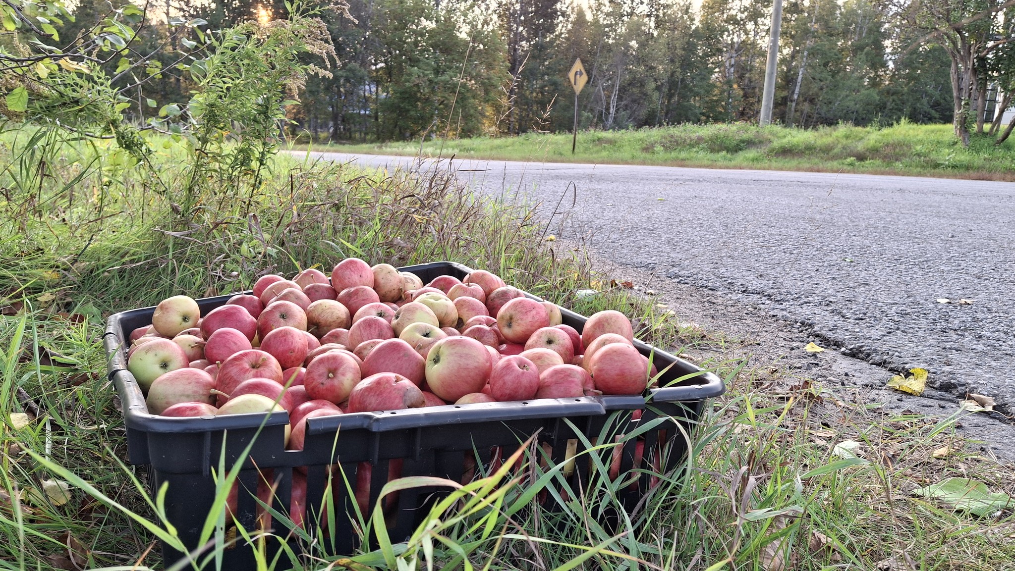 Pomme aux arômes distincts de bananes, ayant également une assez franche amertume. Clin d’oeil à Claude Jolicoeur : je l’appelle pour l’instant ‘Banane amère de Lanaudière’Coloris et formes, mais aussi étiquettes en ruban vert, pour les distinguer, en plus du tableur numérique où tout est consigné.Une première dizaine de caisses remplies, avant la mi-septembreIl y aura une petite histoire de la pomme ‘Juge Bourduas’ à écrire. Et un cidre à expérimenter. Comptez sur moi !Du rang St-Guillaume de St-Jean-de-Matha, riche en pommiers sauvages.Du rang St-Guillaume de St-Jean-de-Matha, riche en pommiers sauvages – bis.