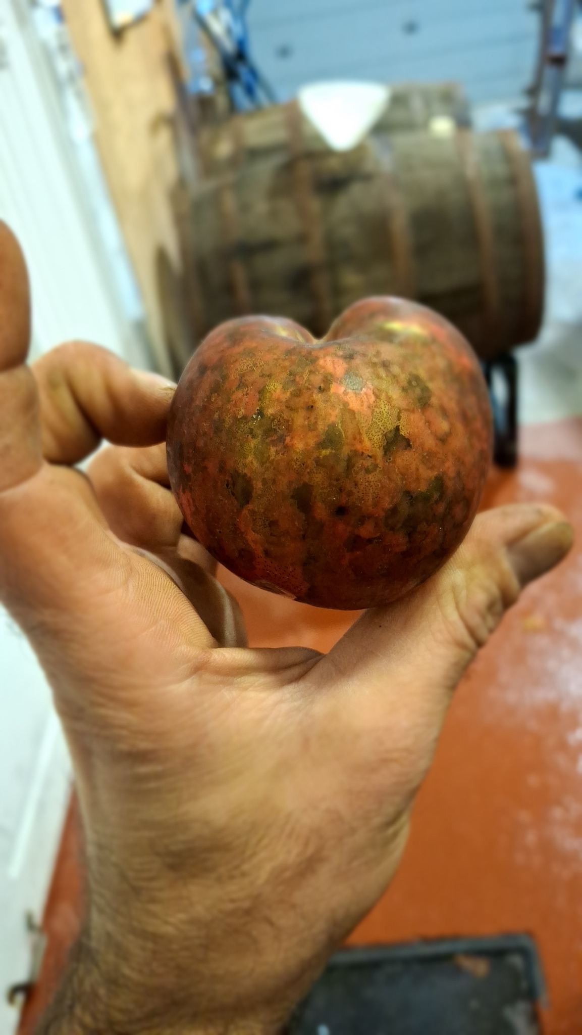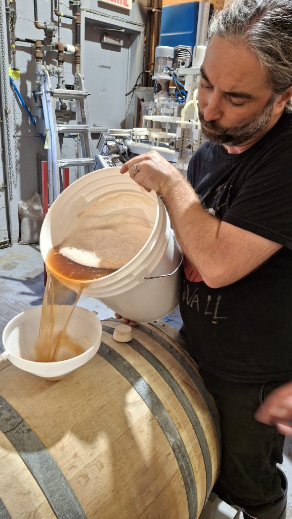 La ‘Crème soda’ ?La presse hydraulique généreusement prêtée par Jean-François ChausséDe la presse à la chaudière, le filetÇa suinte au sommet, à la finAmbré et sirupeux, ce jus de pommes tardives !Le maître brasseur, Michael Fiset, achève la mise en place de la pièce pour la longue journée de presse qui s’en vient.3 barriques à remplir cette année, en deux journées de presse : d’abord en octobre puis en novembreDe la chaudière à la barrique, la chuteLe coin de brasserie employéChez Maltstrom, le 5 octobre 2024.Le marc de pommes, résidu, matière solide à disposerEmpilade de caisses dans la chambre froide de la brasserie.Pas les plus jolies, bien piquées par la mouche de la pomme, mais oh combien sucrées et aromatiques !Petites douces amères qui se démarquent du lot, apportant peu d’acidité mais beaucoup de tanins.‘L’Alcide pas acide’, d’un vieux pommier de la famille Parent, à St-AmbroiseSi blanche, la chair, et ferme !La juge Bourduas en quantités, d’un seul arbre prolifique.Une très belle pomme croquante, juteuse, aux arômes qui rappellent le « Cream soda ».Installation au Marché public de Rawdon, pour un atelier de presse de pommes, le 14 septembre 2024.Les mains dans le sac, à l’intérieur de la presse, et déjà coule le jus dans le chaudron.Votre humble serviteur en train de crinquer sa presse en public, offrant une démonstration d’extraction de jus de pommes devant la clientèle du marché public.Je remplis les verres et les sert aux badauds, clientes, enfants, passants, exposants, hommes et femmes qui se trouvent dans les parages. C’est mon mandat, payé par la municipalité de Rawdon pour produire et servir du jus de pommes frais aux personnes présentes.
