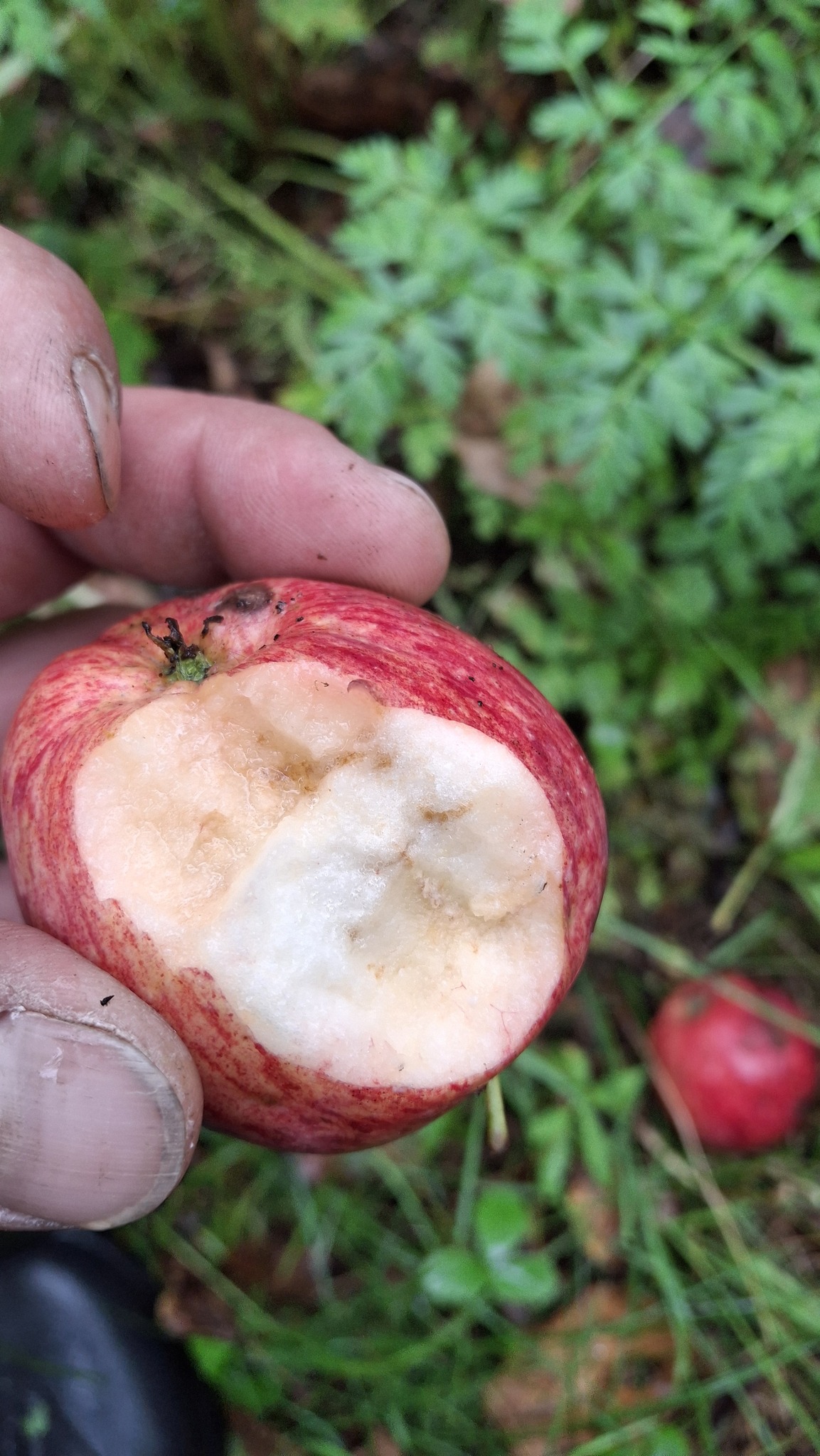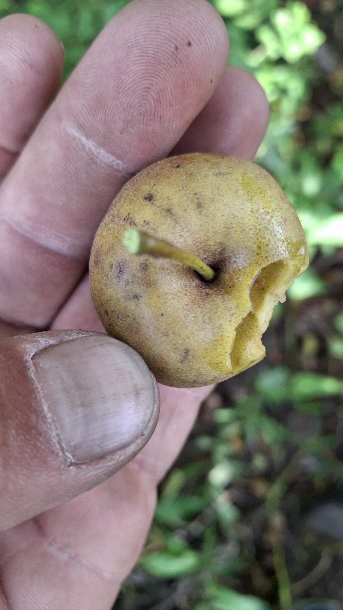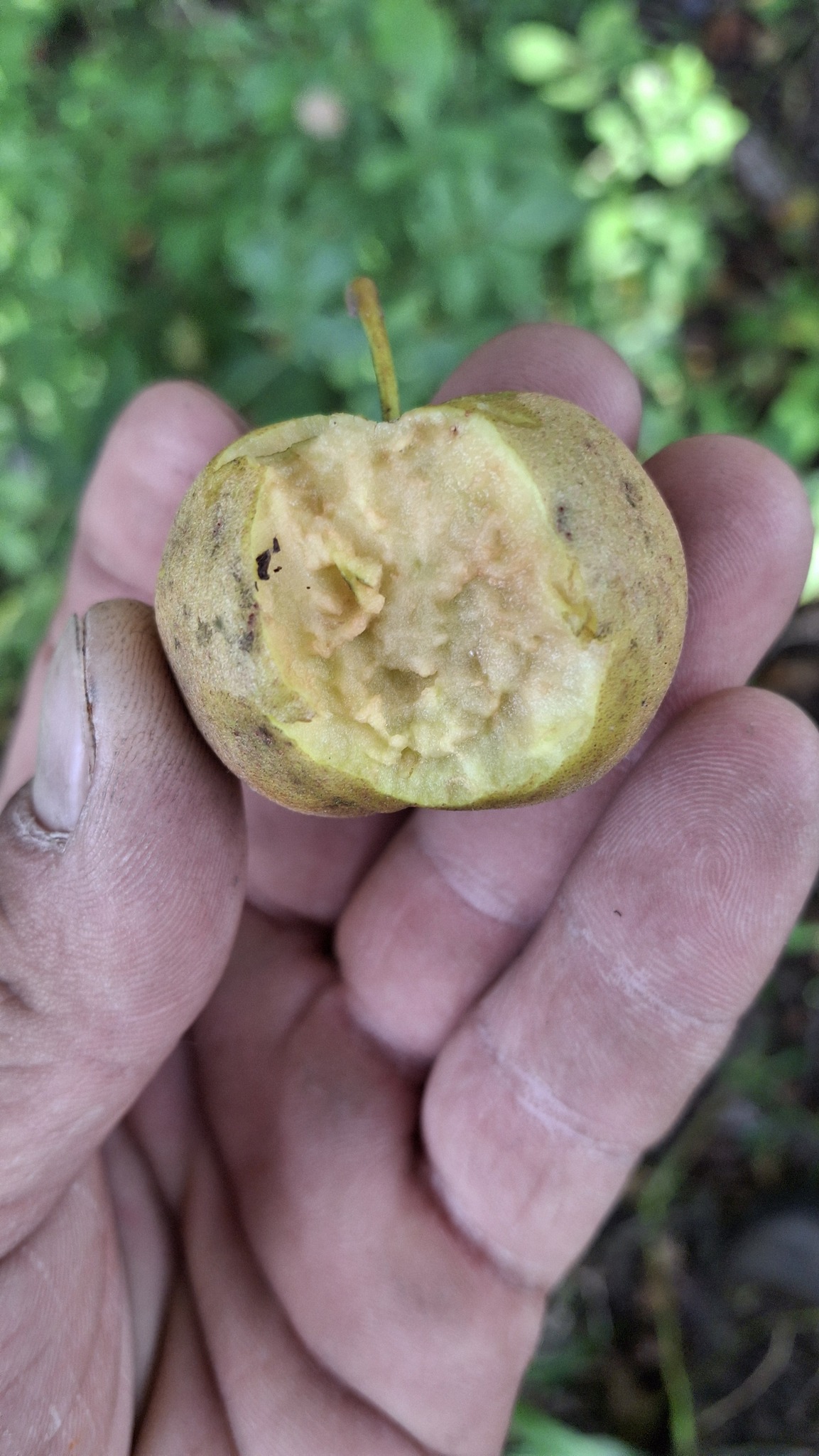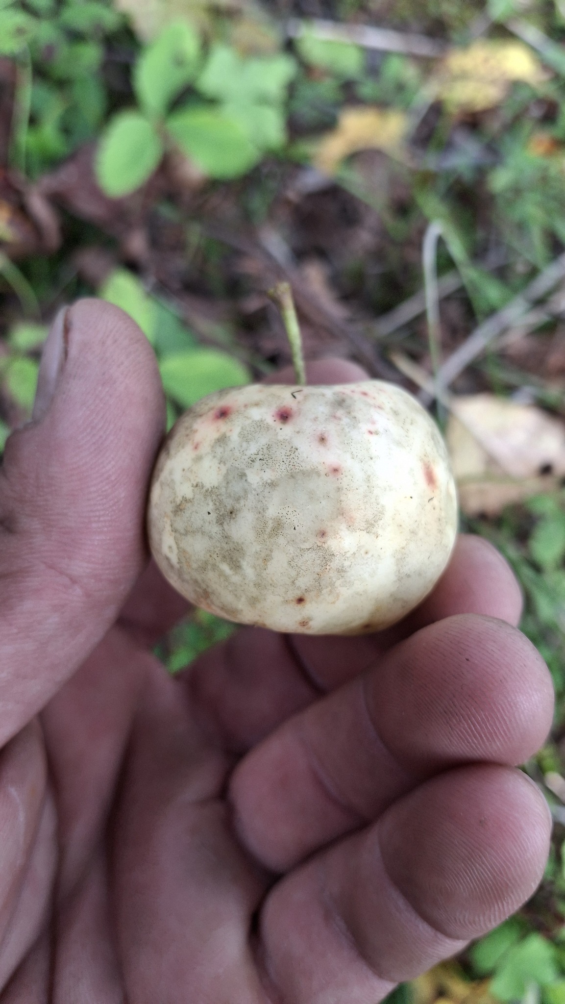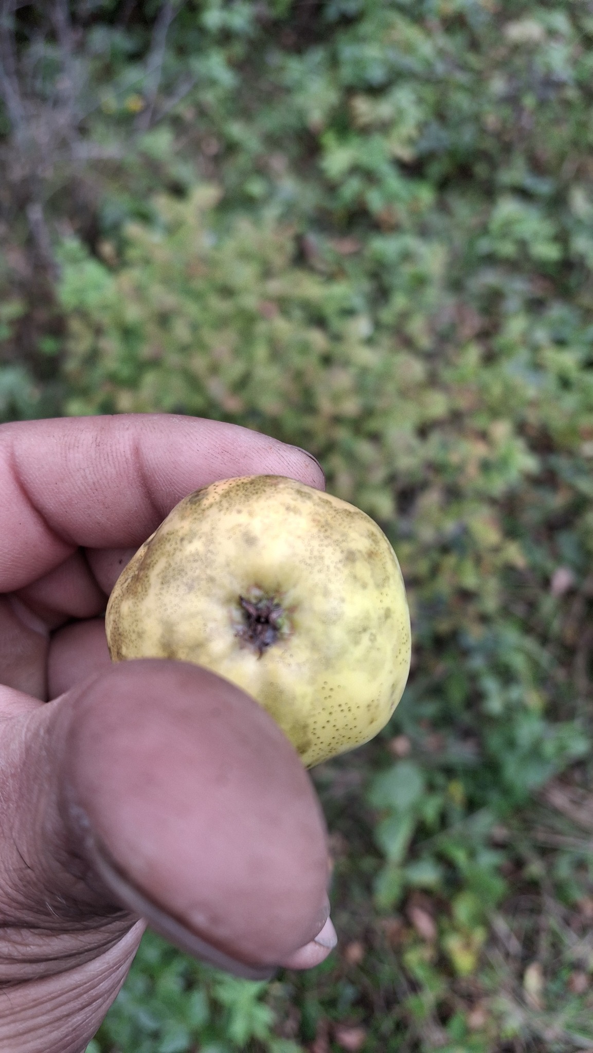 Des petites pommes (avec des gènes de pommette, sans doute), brassées d’un arbre de bord de route, de l’autre côté de la clôture du Camping Campus, à Sainte-Mélanie.