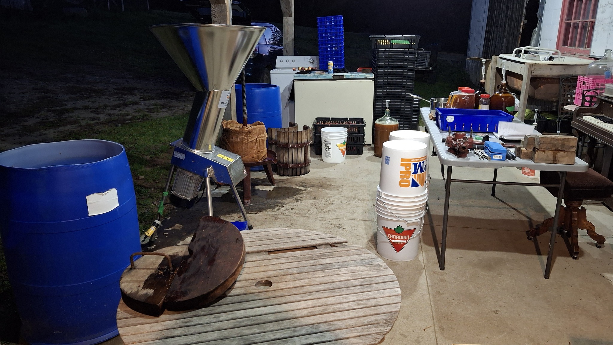 Mais le broyeur que j’utilise (il m’est prêté) est celui acquis par les comparses de la brasserie Maltstrom, avec qui je collabore pour une quatrième année en tant que fournisseur de pommes glanées dans Lanaudière, surtout sauvages, mais aussi de vieux pommiers non traités, laissés à eux-mêmes. Un broyeur qui se branche sur le 220V, et qui peut théoriquement broyer une tonne de pommes à l’heure.