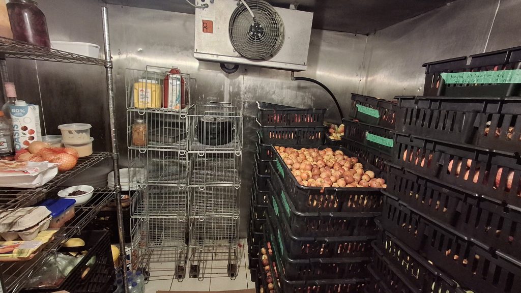 Dans l’espace qui m’était accordé (la moitié de la chambre froide environ), je pouvais y faire tenir jusqu’à 60 caisses à la fois. J’ai pu également entreposer une vingtaine de caisses dans la chambre froide de la brasserie Maltstrom pendant quelques jours, en vue d’une première grosse journée de presse sur place, début octobre (80 caisses). L’espace libéré des caisses après cette première grande presse, j’ai pu le remplir de nouveau, une seconde fois.