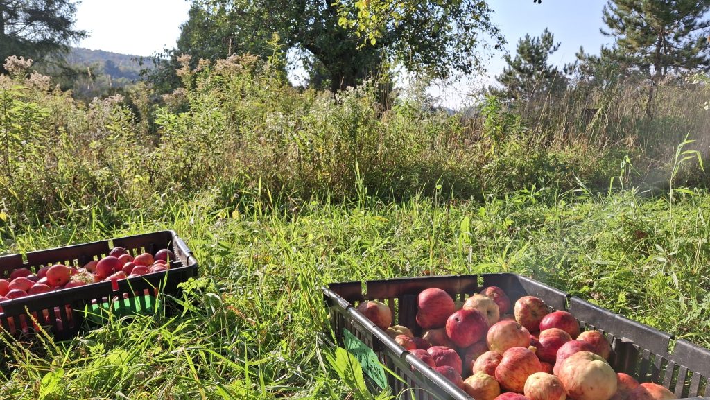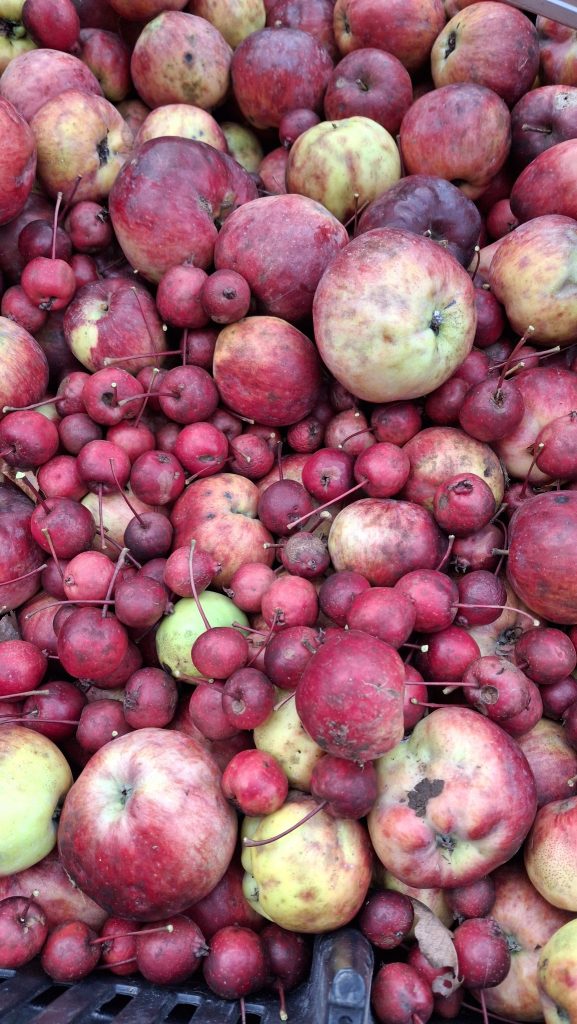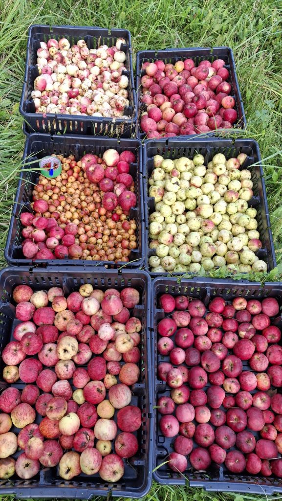 C’est près d’une centaine d’arbres (et de variétés différentes, pour la plupart uniques) dont j’ai cueilli les fruits cette année. Au moins deux tonnes de fruits ont transité dans mes mains et les caisses, et près de 700 litres de jus extraits de mes récoltes.