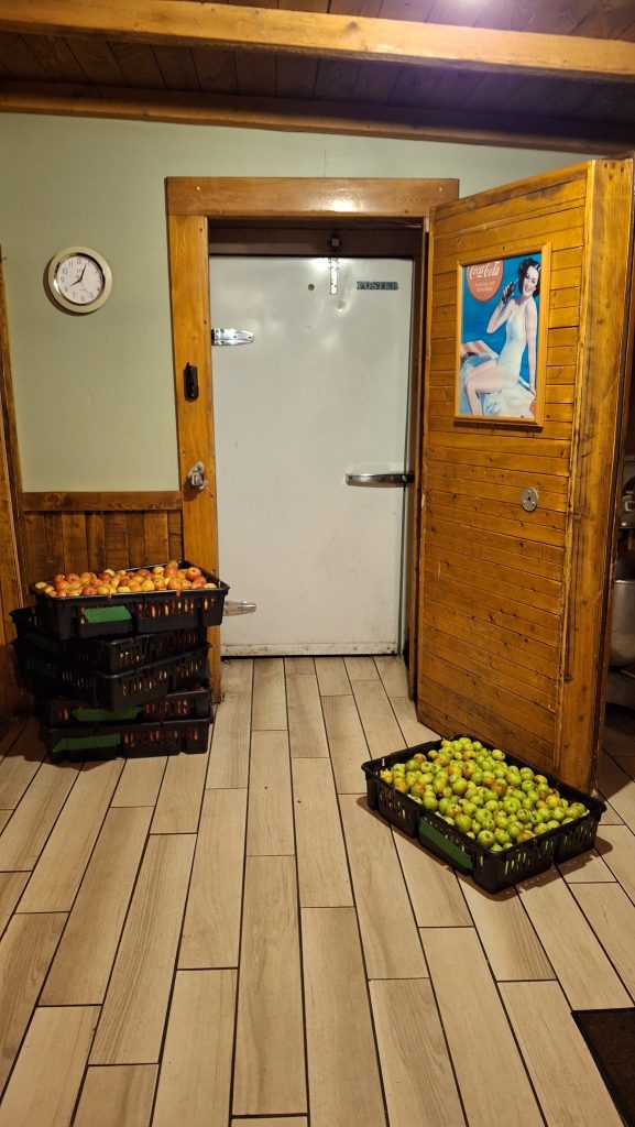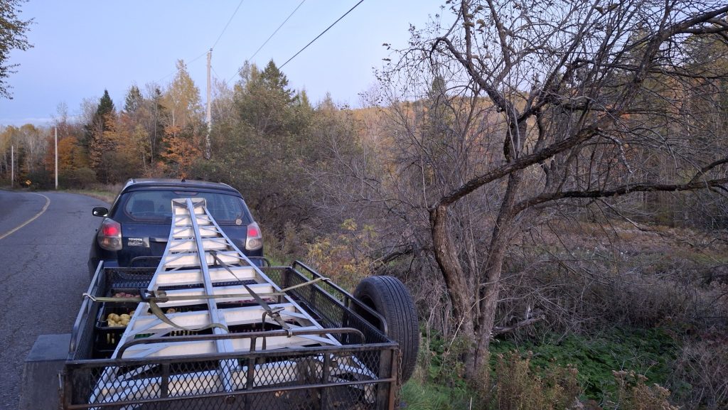 Un grand Merci à mon amie d’enfance Natacha Parent et son conjoint Gino Laporte pour l’accès au bel espace de chambre froide de la Cabane à sucre Fernando Laporte, à Saint-Ambroise-de-Kildare, pendant les deux mois de ma saison de cueillette ! En contrepartie de quoi, comme convenu, les plusieurs pommiers que compte leur terrain seront taillés par mes soins à la fin de l’hiver/début du printemps prochain.