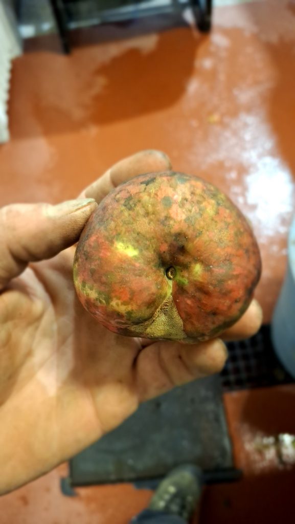 L’occasion de prendre d’autres notes, sur chaque variété de pommes cueillies. Systématiquement leur taux de sucre, mais aussi leur texture, jutosité, la perception d’acidité et d’amertume, les arômes, la capacité de conservation des fruits, etc. Des notes compilées dans de grands tableurs numériques, outils et repères dans ce processus de recherche et développement d’un terroir cidricole et brassicole régional. Y sont identifiées mes candidates à de prochaines étapes, dont le prélèvement de greffons au printemps, pour fin de reproduction et d’expérimentation en verger.