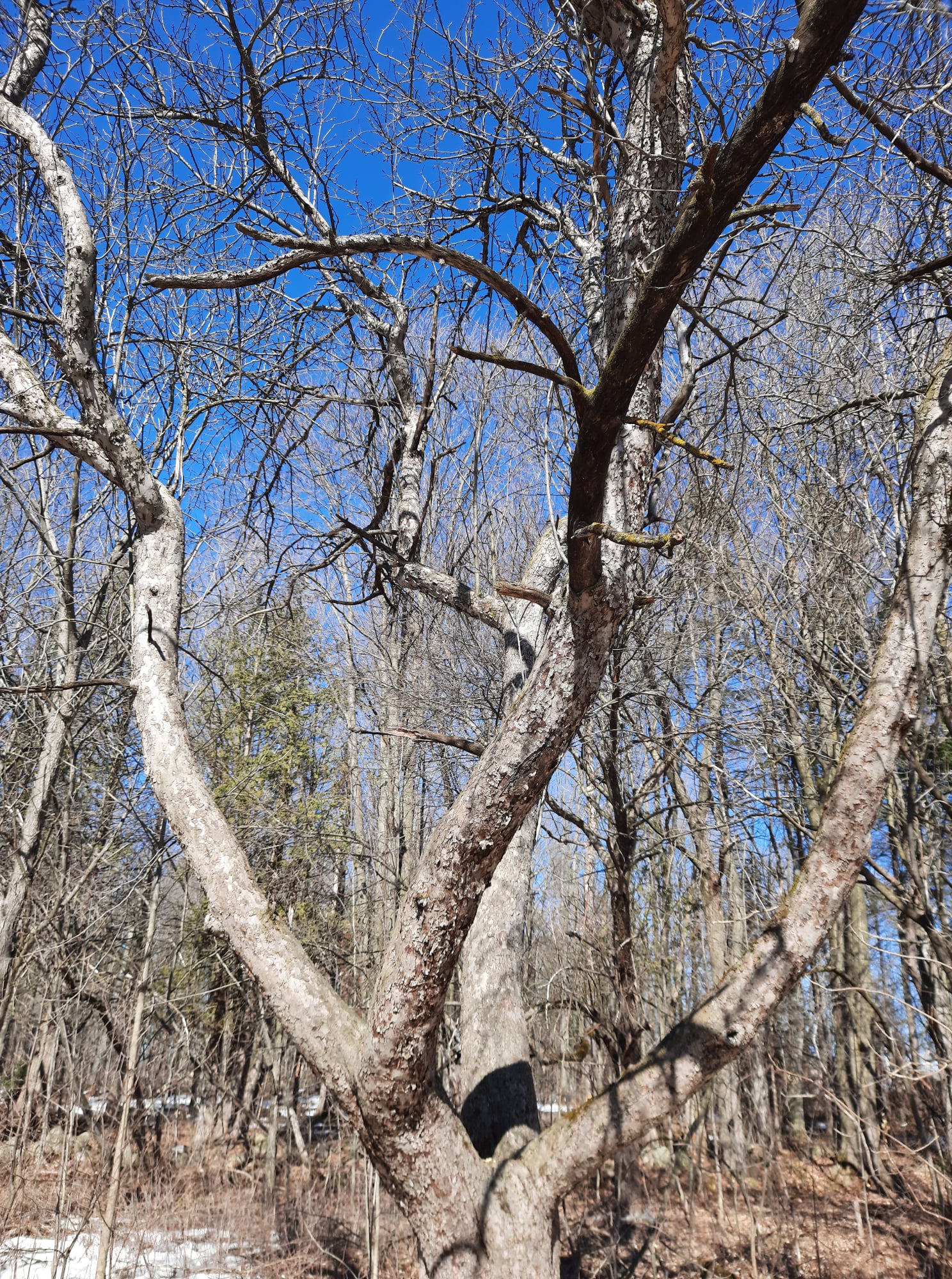 Les vaches se nourrissent aussi largement de pommes gelées-dégelées et leurs déjections sont souvent trouvées pleines de leur pulpe. J’ai remarqué qu’elles transportent même des pommes entières lorsqu’elles sont dans cet état. Un hiver, observant sous un chêne sur la neige et la glace sur les berges de la rivière quelques fragments de pommes gelées-décongelées, j’ai regardé plus loin et détecté deux ou trois traces d’une corneille et les crottes de plusieurs qui devaient être perchées sur le chêne, mais il n’y avait là aucune trace d’écureuils ou d’autres animaux. Ici et là il y avait un trou parfaitement rond dans la neige sous l’arbre, et abaissant ma main, j’ai retiré une pomme de sous la neige à chaque trou. Les pommiers les plus près étaient à trente perches de distance de l’autre côté de la rivière. Les corneilles avaient évidemment amené les pommes gelées-dégelées à ce chêne pour la sécurité et y avaient mangé ce qu’elles n’avaient pas laissé tomber sur la neige.