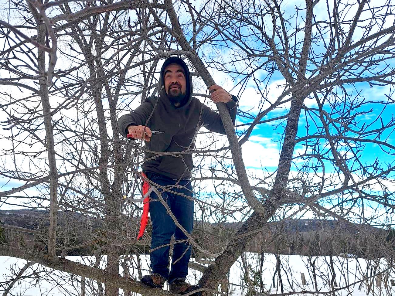 Taille printanière de pommiers (sauvages ou plantés) présentant des qualités intéressantes, et dont je récolte dans certains cas les fruits, la saison venue.