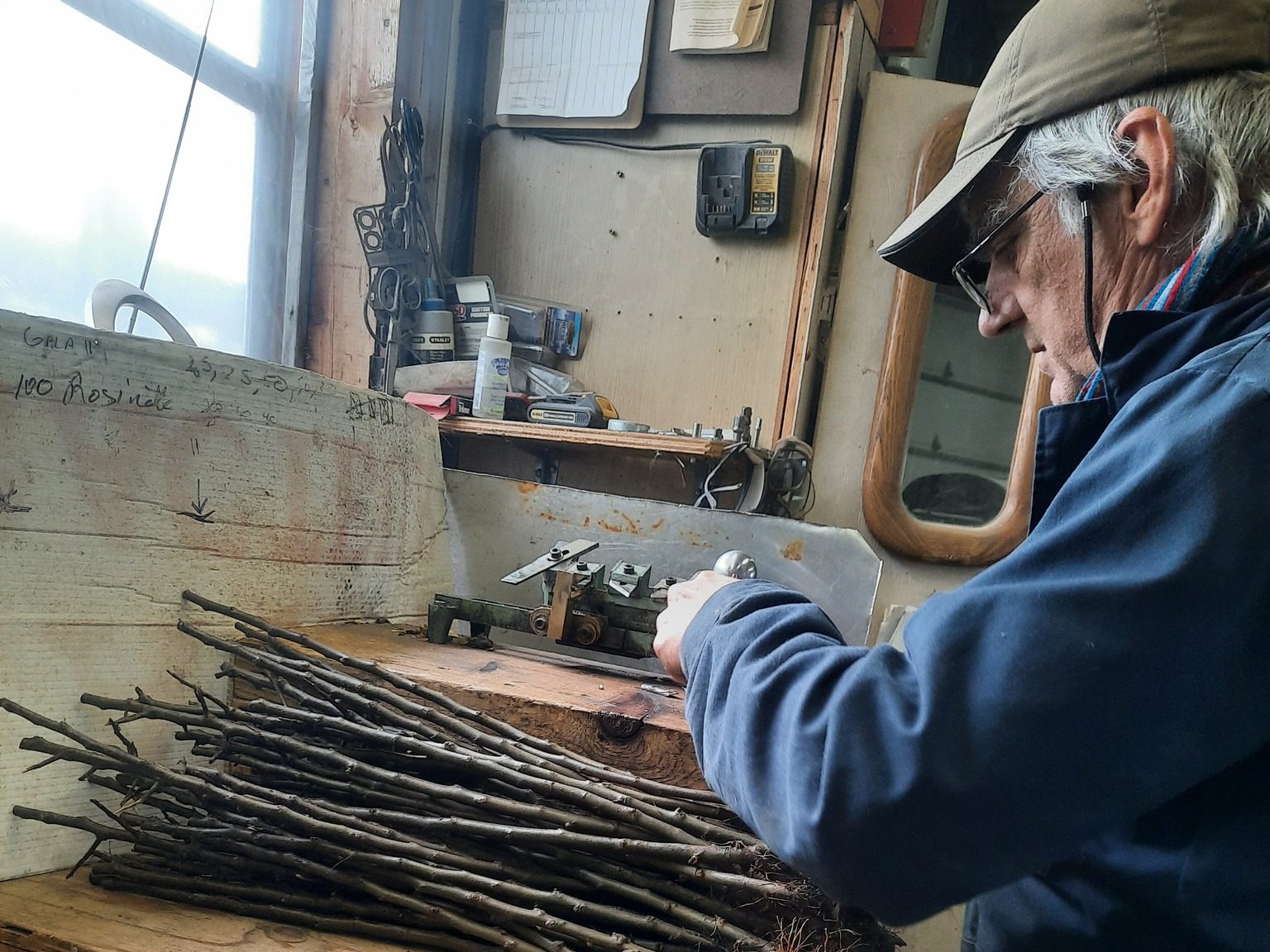 Contribution et collaboration de Roland Joannin, de La Pomme de demain, qui a offert gracieusement 200 porte-greffes au Ministère des Friches et Pommeraies afin d’aider au démarrage du projet (2022-2023). Qui plus est, c’est Roland lui-même qui a greffé les 200 premiers pommiers, avec les greffons récoltés par le « Ministère », sur ces porte-greffes qu’il a donné.