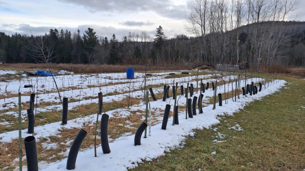 Implantation d’un verger conservatoire de variétés anciennes et locales (Fiducie d’Utilité Sociale Agricole des Vallons d’en Haut, Ste-Mélanie) prévue en 2026.