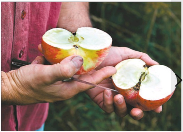 Quelques uns des pommiers ancestraux qu’il découvre poussant sauvagement sont surprenamment libres d’insectes, notes Auger, qui utilise des méthodes biologiques. En contraste, dit-il, les pommes McIntosh sont extrêmement susceptibles aux maladies.